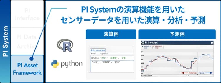 センサーデータを基に演算を行い、その結果をデータベースに登録可能。さらに、AIや機械学習で得られた数学モデルにセンサーデータを適用し、予測値をリアルタイムデータと同様に取り扱うことも可能です。