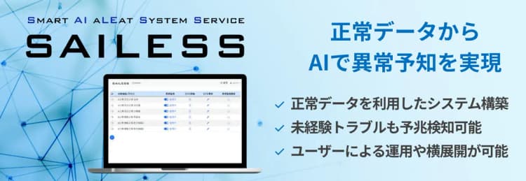 SAILESSとは正常時の製造運転データをAIに学習させることで、過去に経験していないトラブルを検知します。PI Systemをベースとした異常予兆検知システムの構築にはSAILESSが適しております。