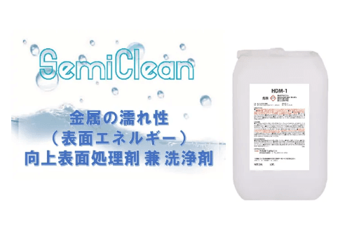 | HDM-1 | 金属の濡れ性向上も可能な 洗浄+αのアルカリ洗浄剤です。主に金属脱脂、またその後工程の塗装やコーティングといった表面処理前の洗浄に有効です。 |
