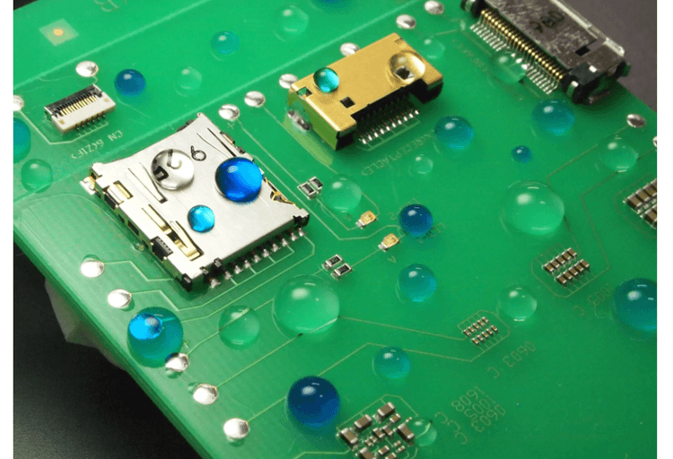 フッ素の高い撥水力で、湿度・結露・錆などから実装基板・電子部品を強力に保護します。使用されているフッ素溶剤は消防法の危険物に非該当で安全性が高く、防爆設備や危険物倉庫が不要です。