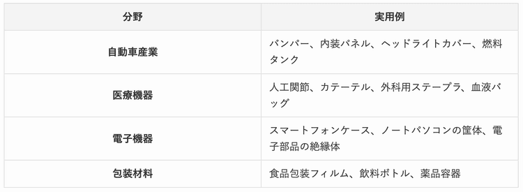 ポリマーアロイは、さまざまな産業分野で特有の問題解決とイノベーションを実現しています。ここでは、ポリマーアロイの用途・実用例について紹介します。