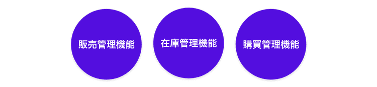 販売管理システムは提供するメーカーによって様々な特徴や機能を有したものがありますが、ここでは代表的な機能である「販売管理機能」「在庫管理機能」「購買管理機能」をご紹介します。