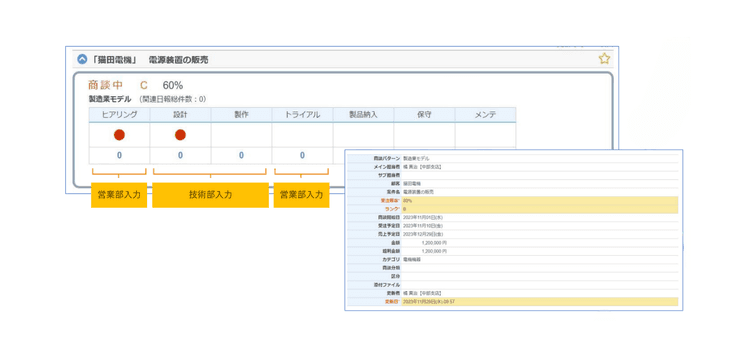 この機能は、営業やプロジェクト管理において見込み顧客や実績を効果的に管理できるように設計されています。売上予測や達成状況の追跡に役立ち、ビジネスの成果を詳細に把握することができます