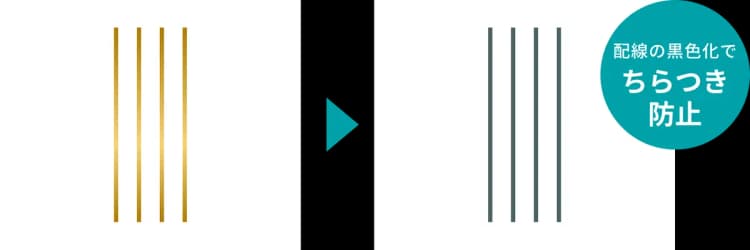 アンテナ配線は4面とも黒色化を施しており、反射を軽減しています。どの面に光があたっても、アンテナ配線がチラついて目立つ心配はありません。