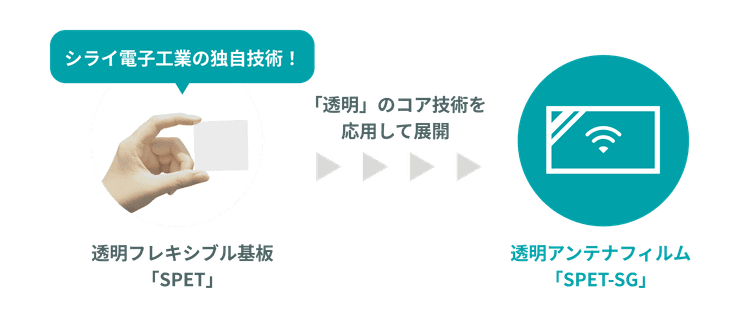 クリアさを求めて改良を重ね、高透明・高耐熱・低抵抗を特徴とした透明フレキシブル基板「SPET(エスペット)」が生まれました。現在は透明基板のコア技術を応用し、様々な付加価値のあるSPETシリーズを展開しています。