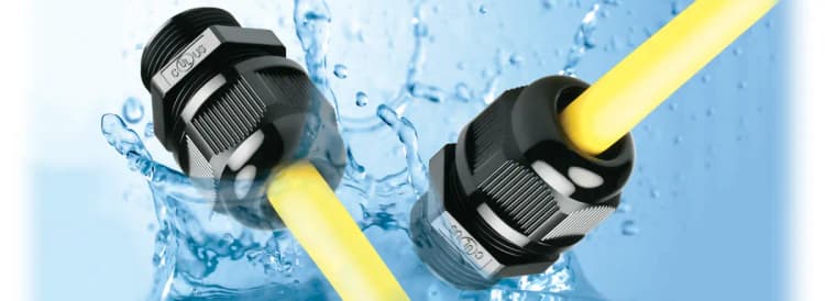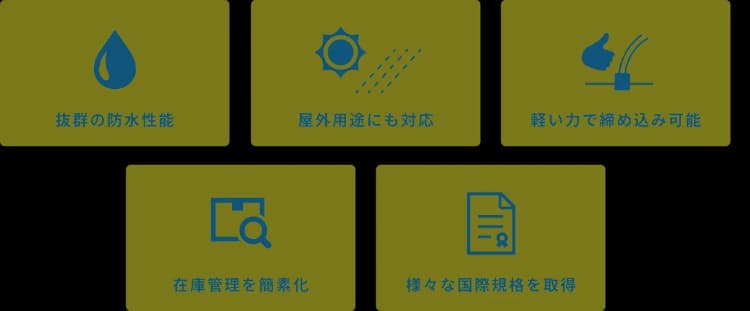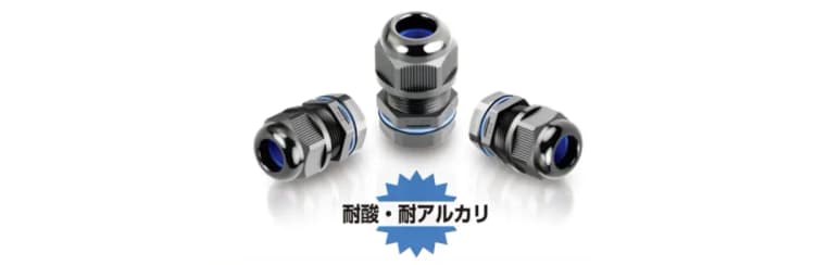 「スーパーグランド(SUPER GLAND)」シリーズは、装置・機器類の筐体とケーブルの入線口に使う製品です。主に装置・機器類や、水・ホコリ等を嫌う電気製品の制御盤等に用いられます。防塵・防水や、ケーブルの固定・保護などの役割があります。防水性が高く、耐候性に優れた材料を使用しているため特に屋外用途で多くの実績がございます。
