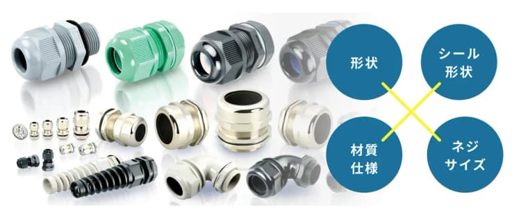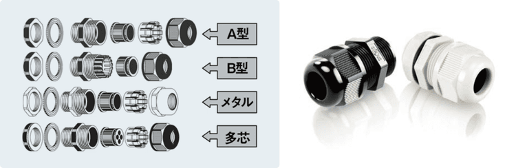 これらの役割を担う製品は、防水ケーブルグランド、配線クランプ、防水コネクタ、ケーブルコネクタ、ケーブルフィッティング、貫通金物など、様々な呼び方があります。