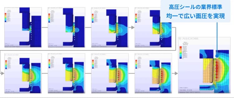 シール機能を実現する製品として、ボール拡張型製品、カッププラグ、ネジ式プラグ、ボールプラグなどがありますが、これらの取付時の応力分布は、いずれの手法も中心線上に集中する傾向があり、分布面積が小さくなっています。
