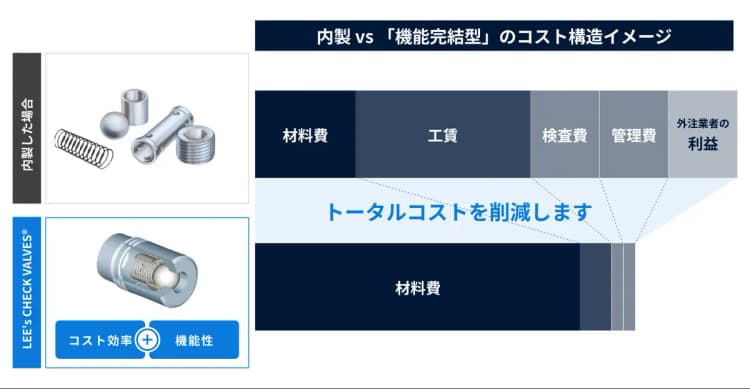 LEE社の「機能完結型」流体機器は、その高度な技術力と革新的な設計により、設計自由度を高め、お客様にコスト効率と機能性の両立を提供します。