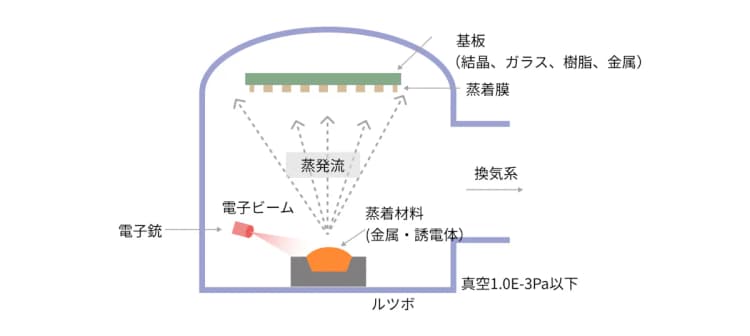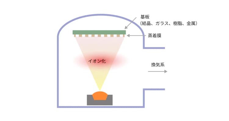 真空蒸着は物理蒸着に分類され、その他、スパッタリングやイオンプレーティングもこの手法に含まれます。