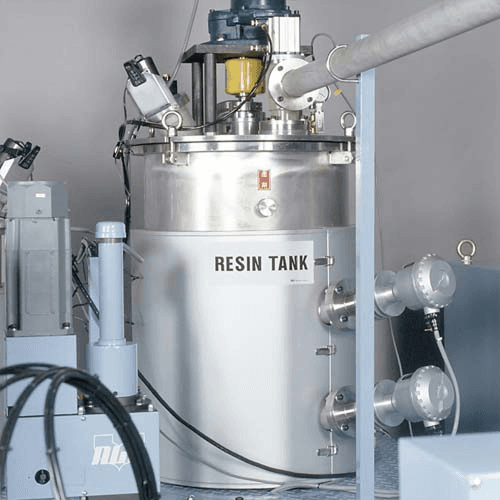 ![]() | タンク タンク内の樹脂を高真空で脱泡する密閉タンクです。樹脂の粘度に合わせ、脱泡しやすくするための攪拌機構や加熱機構を必要に応じて装備します。 特に耐久性・安全性を重視し、ステンレス製を採用しています。 |