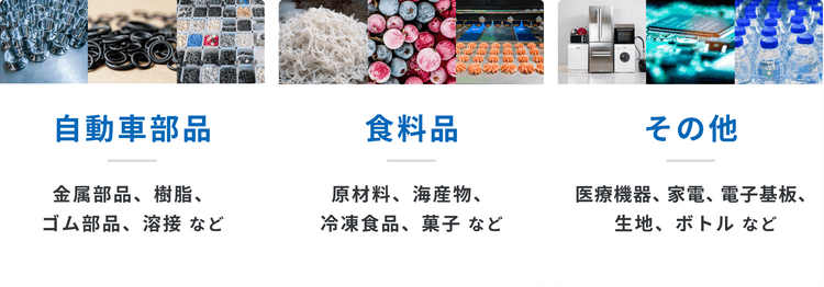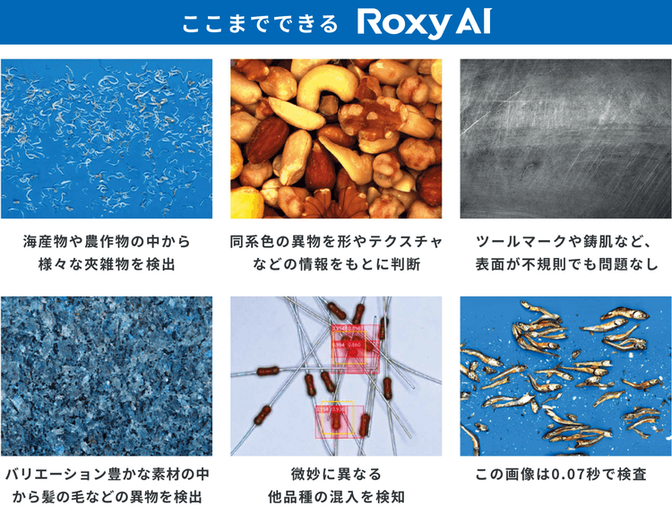 Roxy AIは、自動車部品や、食料品、電子機器など様々な製品の外観検査に適用されています。