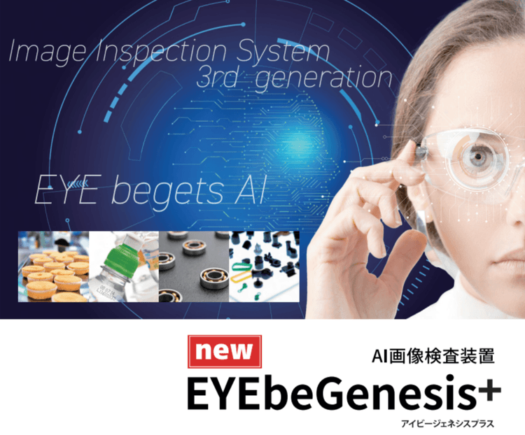 | AI画像検査装置「EYEbeGenesis+」 | 最新の第3世代のAIを搭載したAI画像検査システムです。これまでのAI画像検査装置は、アルゴリズムによる判定だったため膨大な画像を覚えさせることが必要でしたが、第3世代AIを搭載したEYEbeGenesisでは、独自の画像の”水増し機能”を搭載することで少ない情報で、かつアルゴリズムではできなかった”ヒトの目に近い検査”を可能としました。 |