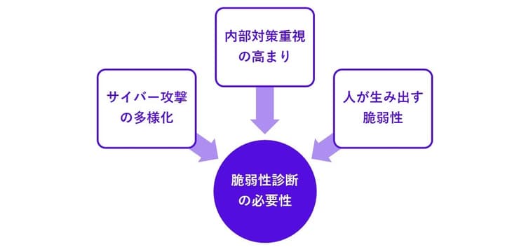 また、近年はサイバー攻撃の種類も多様化・複雑化されていることや、ヒューマンエラーによるリスクが発生するケースが多いことによって、脆弱性診断の必要性がますます高まっています。