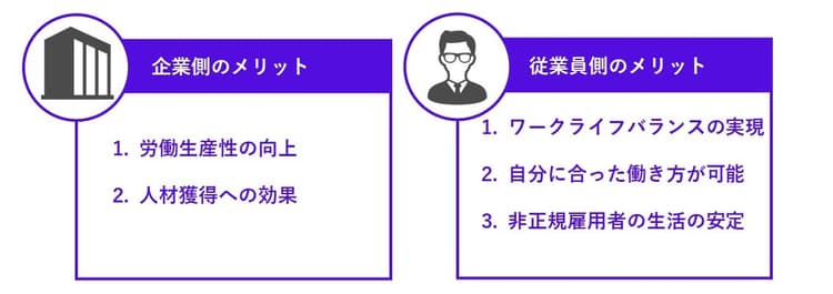 働き方改革により正規・非正規雇用の格差を解消することで、労働意欲の向上を図れます。長時間労働の改善と合わせて、これまで就労が難しかった人も活躍の可能性が広がるので、労働参加率の向上も期待でき、人手不足の解消に繋がると考えられます